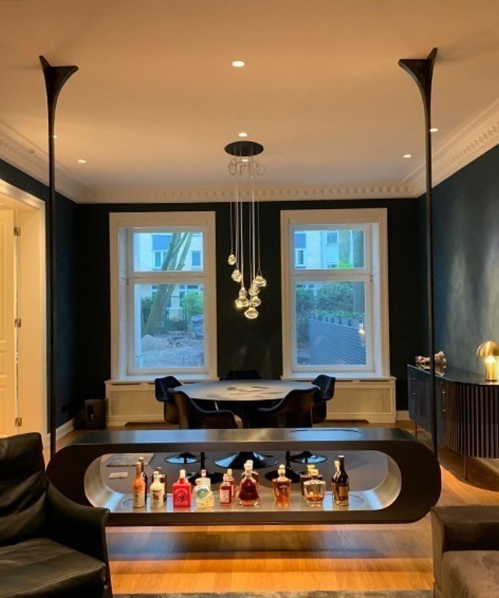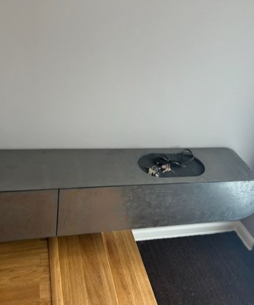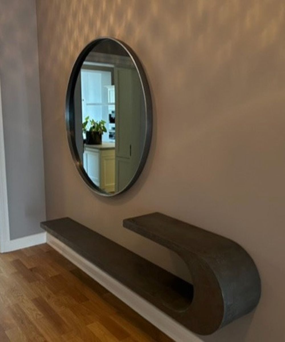 Floating bar MDF spray metal finish steel, polished. Sideboards and mirrors liquid metal steel, smoothed