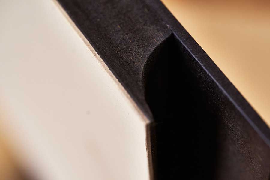Front mit Griffmulde, MDF schwarz und helles Linoleum