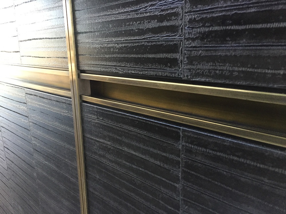 Weichmetall aus Kupfer und Zink. In den letzten Jahren verstärkt auch bei uns im Möbelbau im Einsatz. Als Kanten bei speziellen Oberfläche oder als dünnes Blech für größere Flächen.