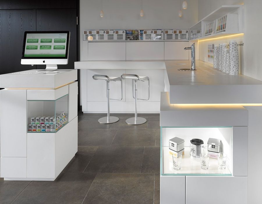 Wir setzen Mineralwerkstoffe gern für Küchenarbeitsplatten ein, das sie gut zu bearbeiten sind, widerstandsfähig und eine wärmere Haptik haben als Natursteine