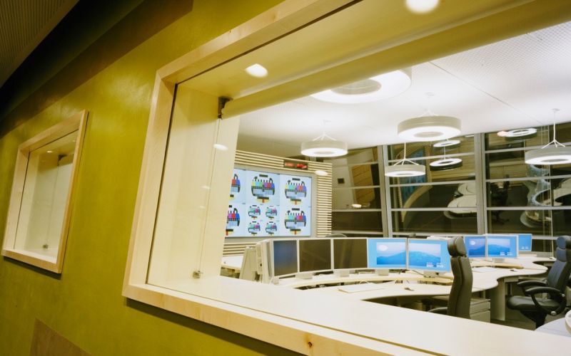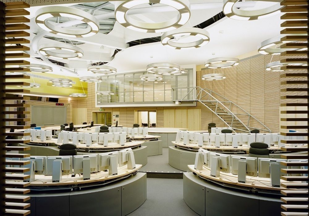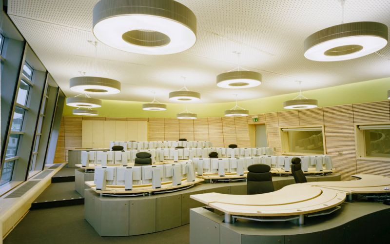 Production and installation of acoustically effective wall panelling, kitchens, radiator covers, door elements, lounge, crisis control room and collaboration on control room desks. Finished in European maple and laminate with digital print.