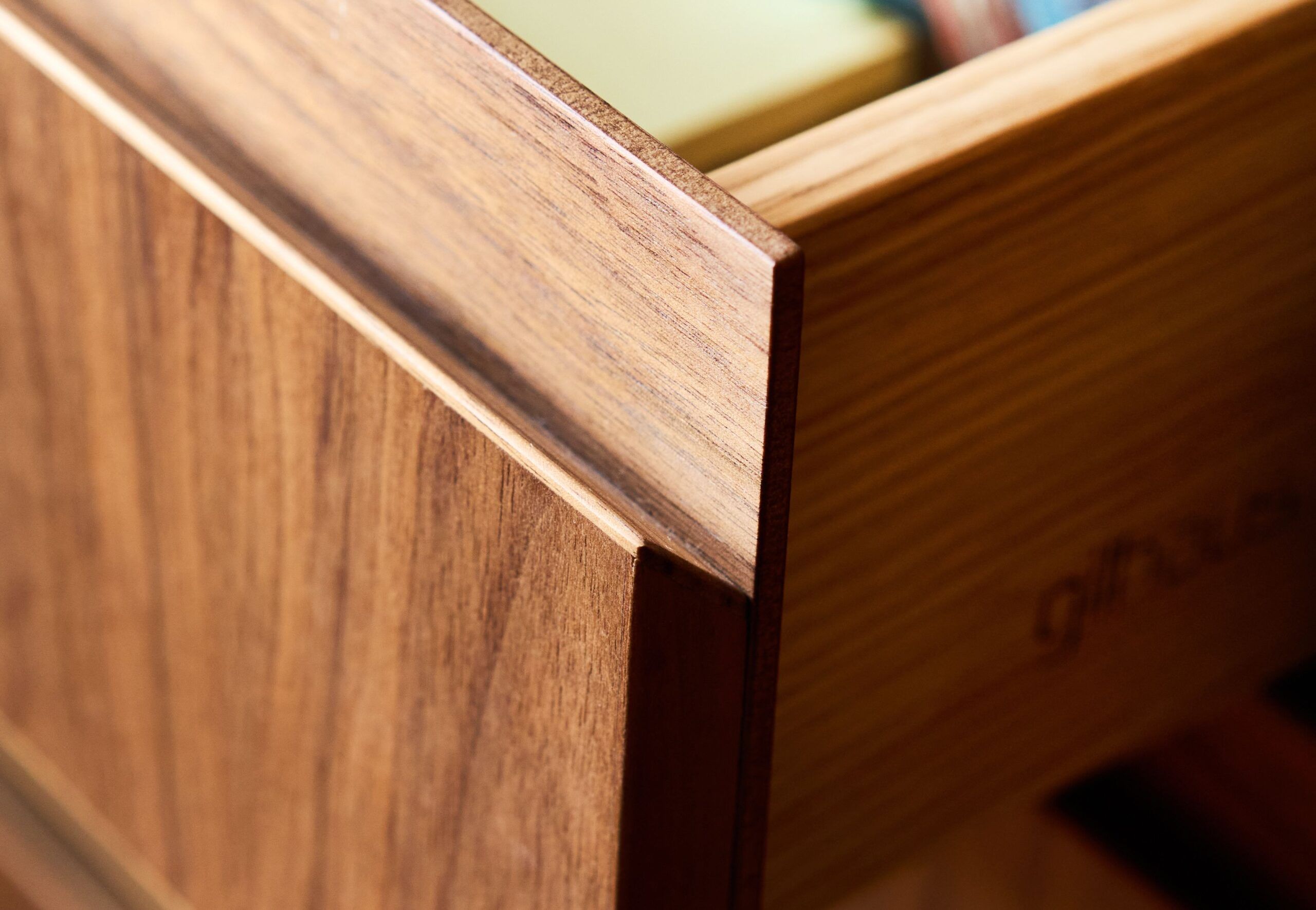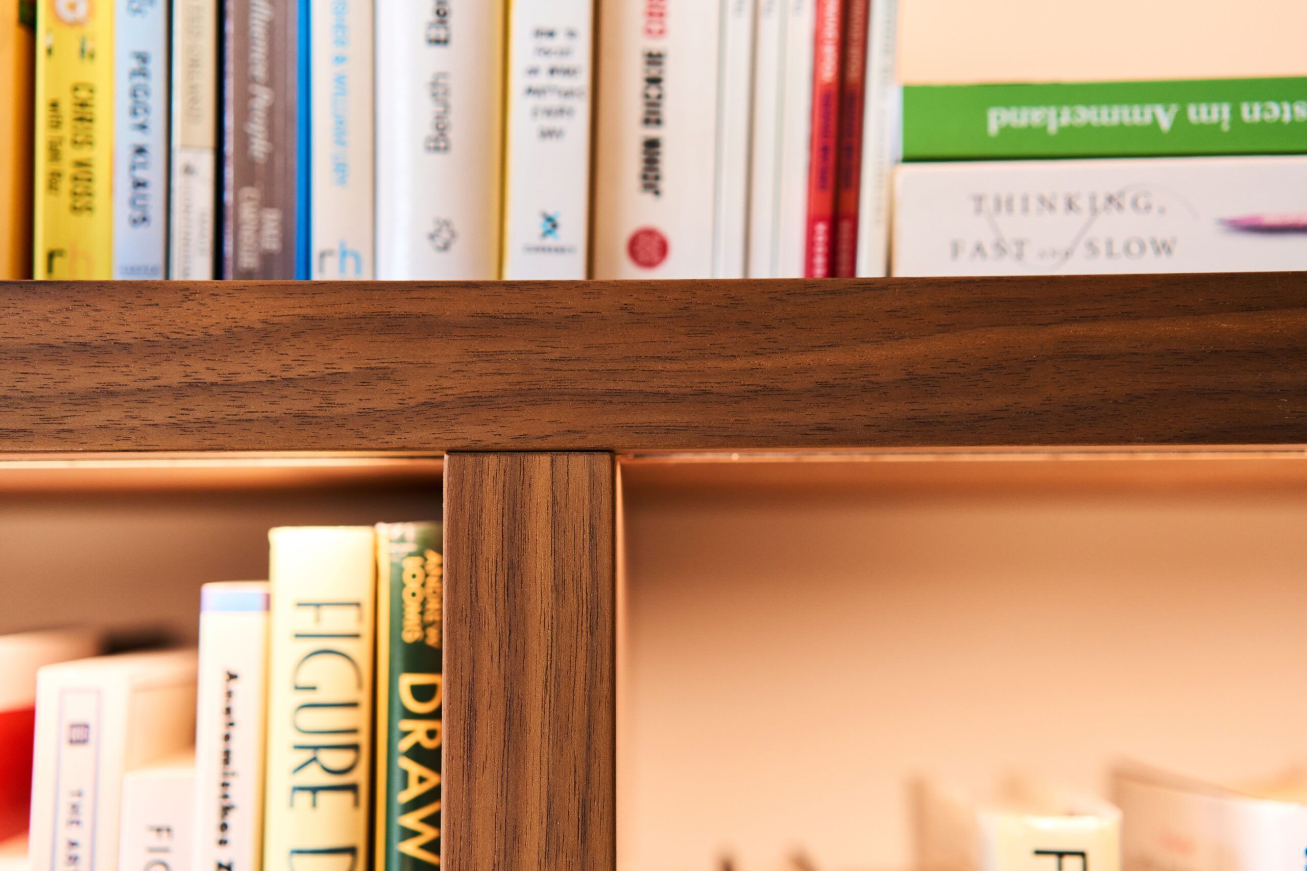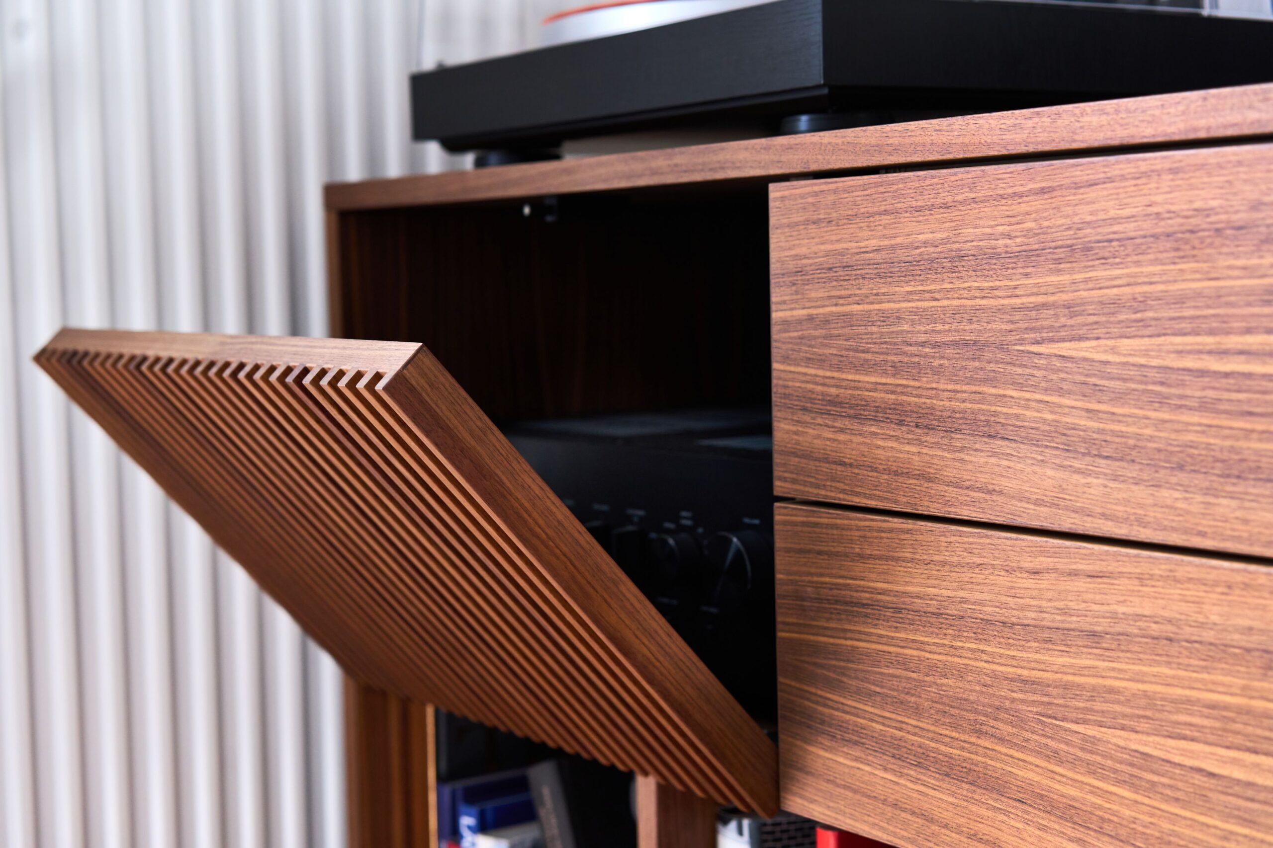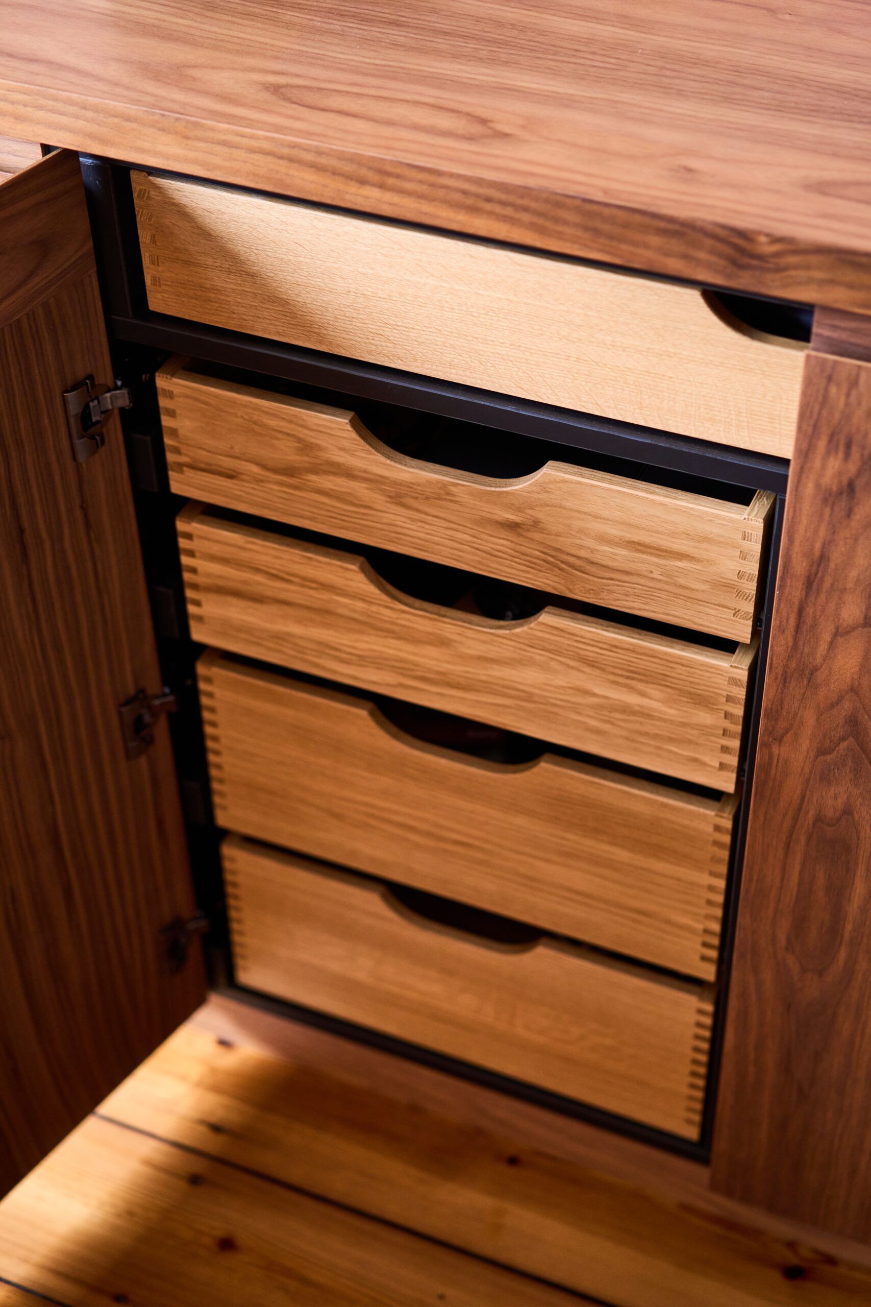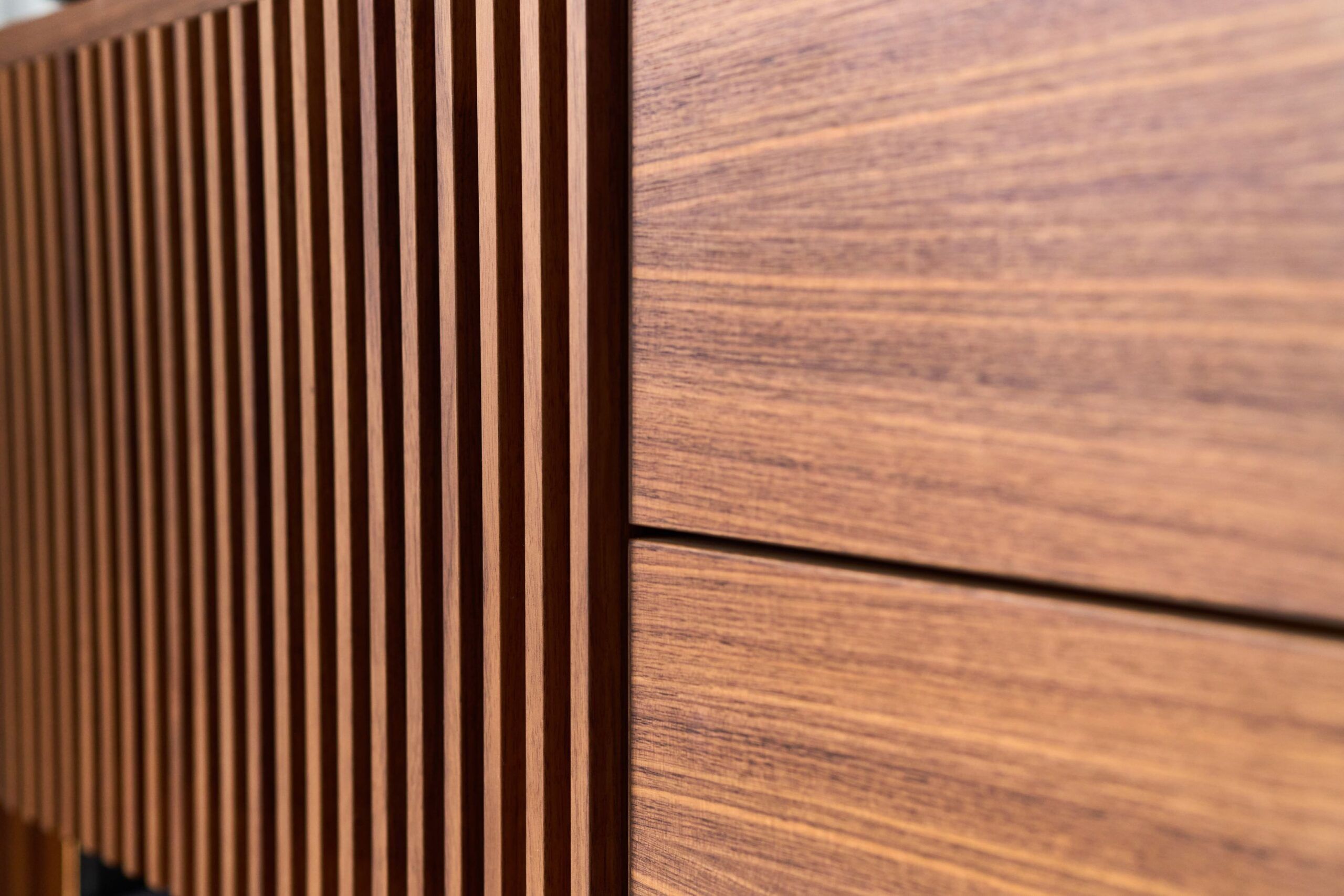 Sideboard für Plattenspieler, Schallplatten mit integriertem Lautsprecher. Nussbaum massiv, geölt. Schreibtisch mit integriertem E-Piano. Bücherschrank Nussbaum. Schlafzimmerschrank MDF weiß lackiert