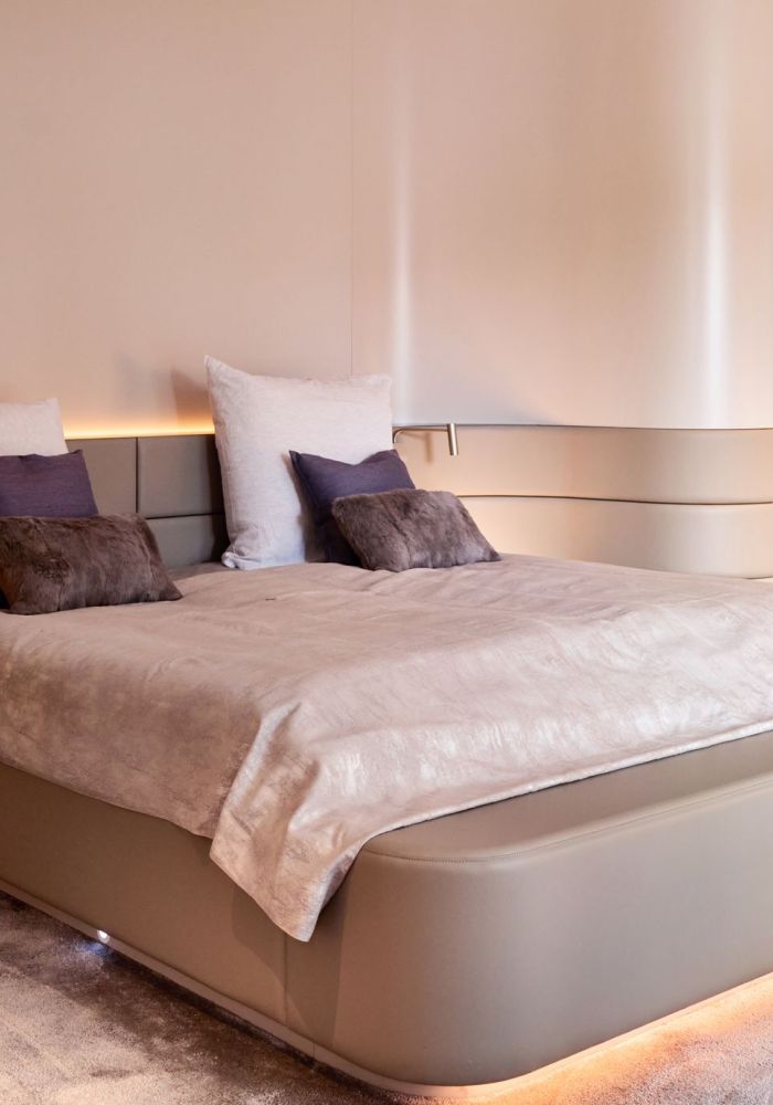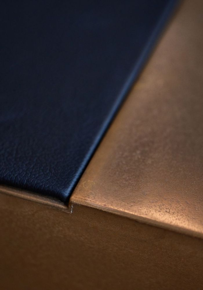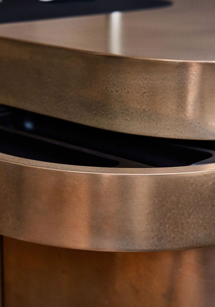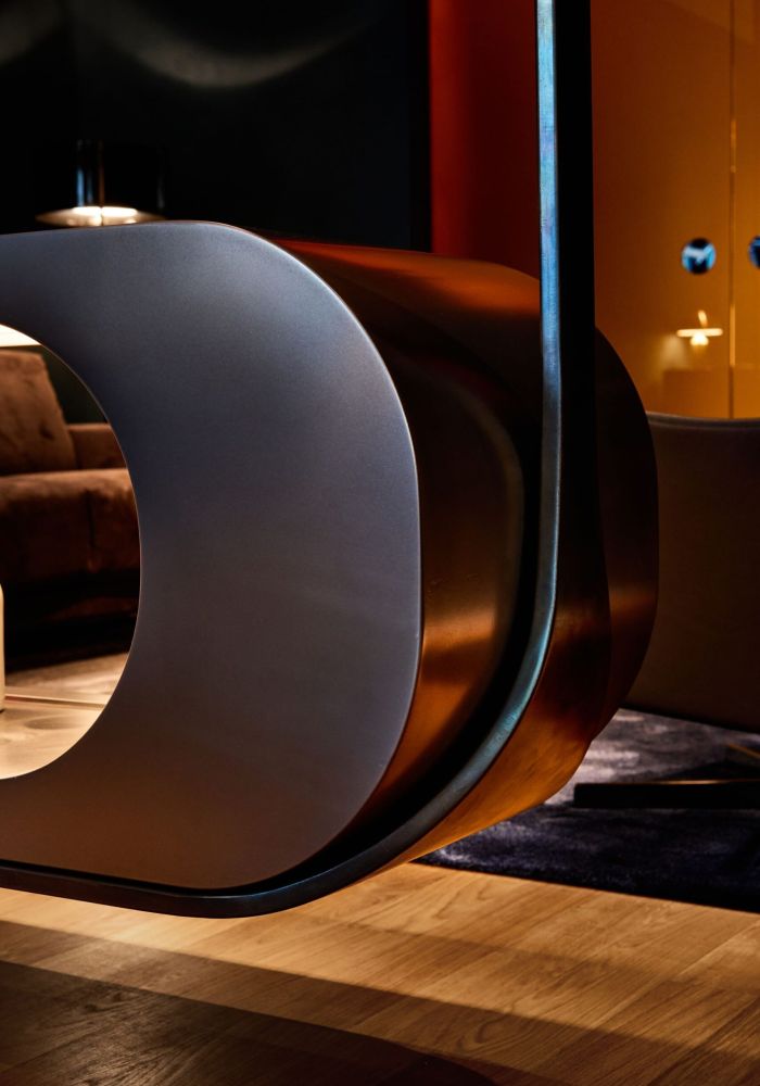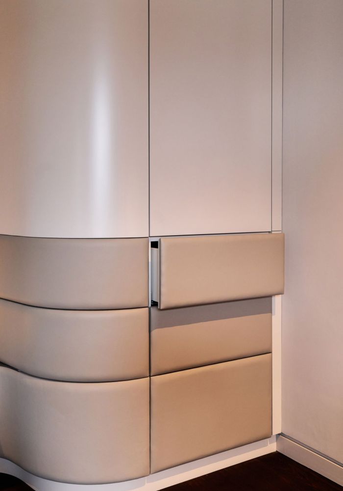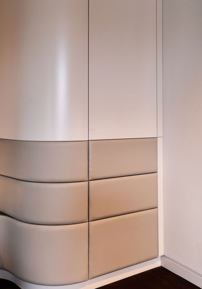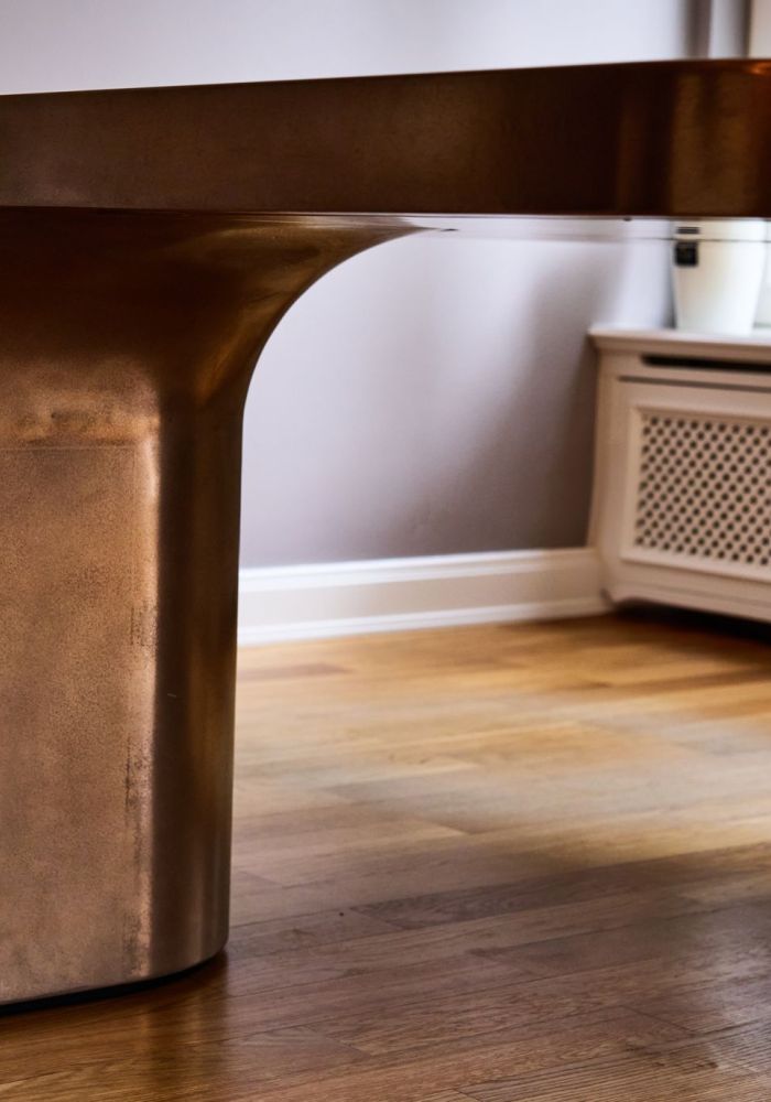 Dieverse Einzelstücke: Schreibtsich für Zwei, MDF, Oberfläche metallbeschichtet. Regal mit seitlichen Rundungen, Garderobe mit Spiegel, schwebende Bar, Schreibtisch, Sideboard, Bettkopfteil